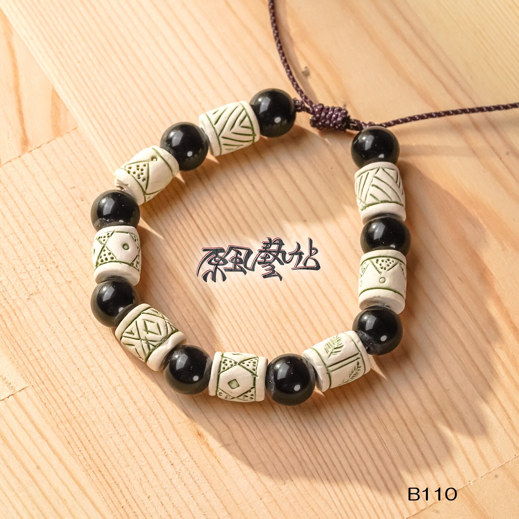 この六種類をセラミックで表現し、奇麗なガラス玉を施したブレスレットです。